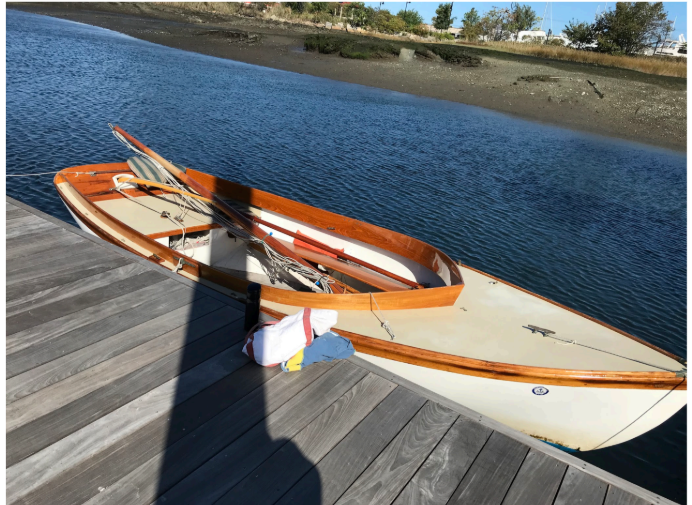 1978 Herreshoff Dough Dish 15 foot wooden SV Missing from Admirals Hill Marina, Chelsea, Massachusetts